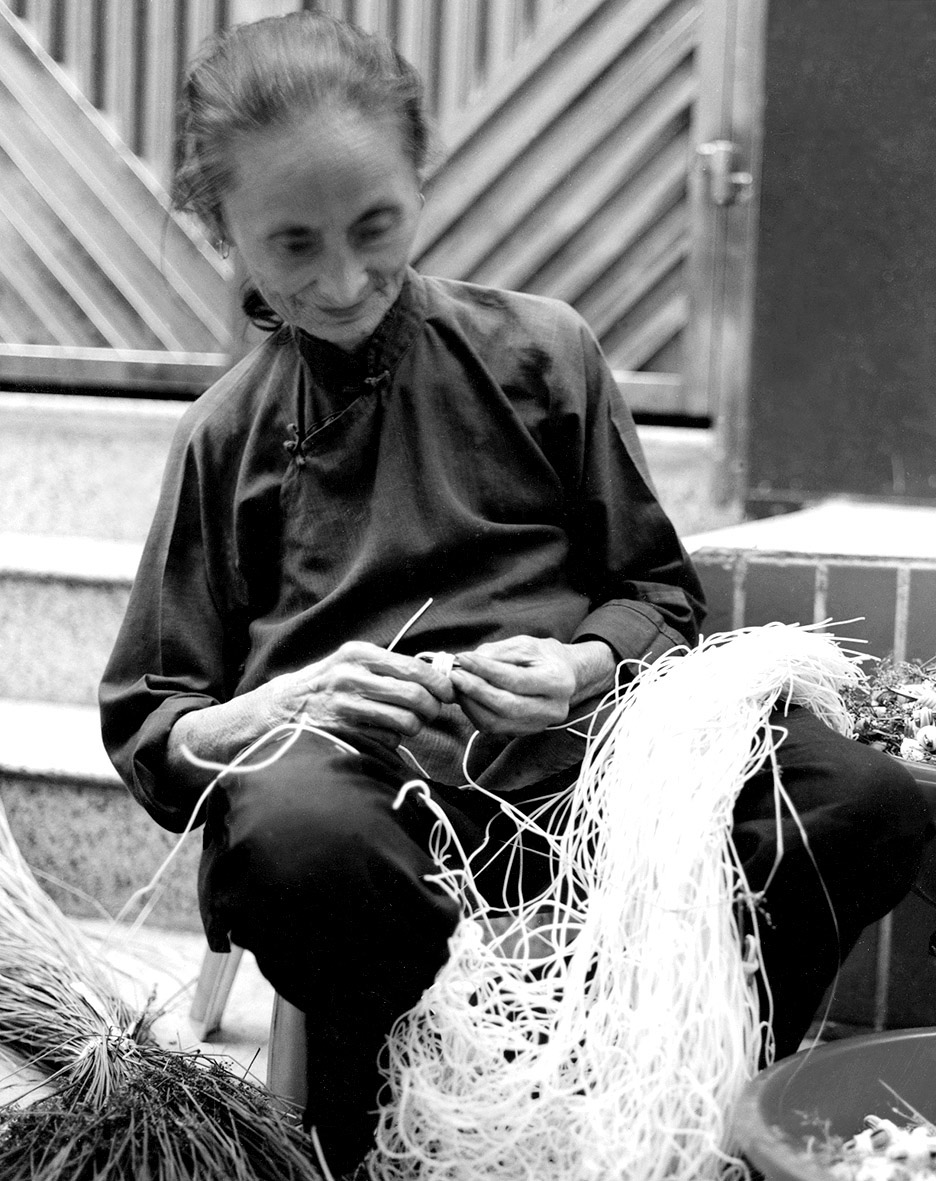 20世紀50年代大石村民正在制作燈芯球--選自《番禺百年圖鑒》(大石街文體中心供稿)