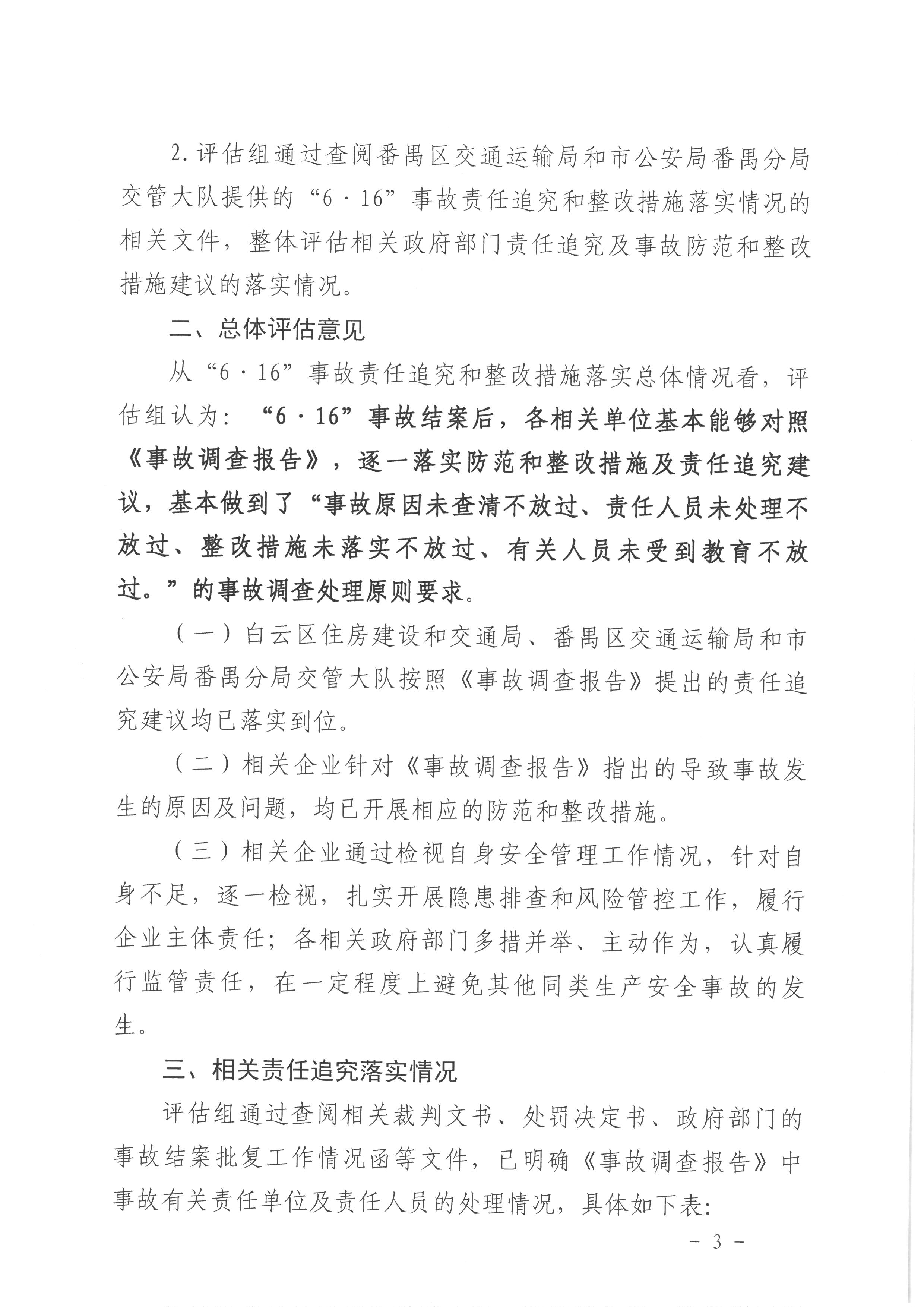 番禺南村“6·16”一般道路交通事故防范和整改措施落實(shí)情況評(píng)估報(bào)告