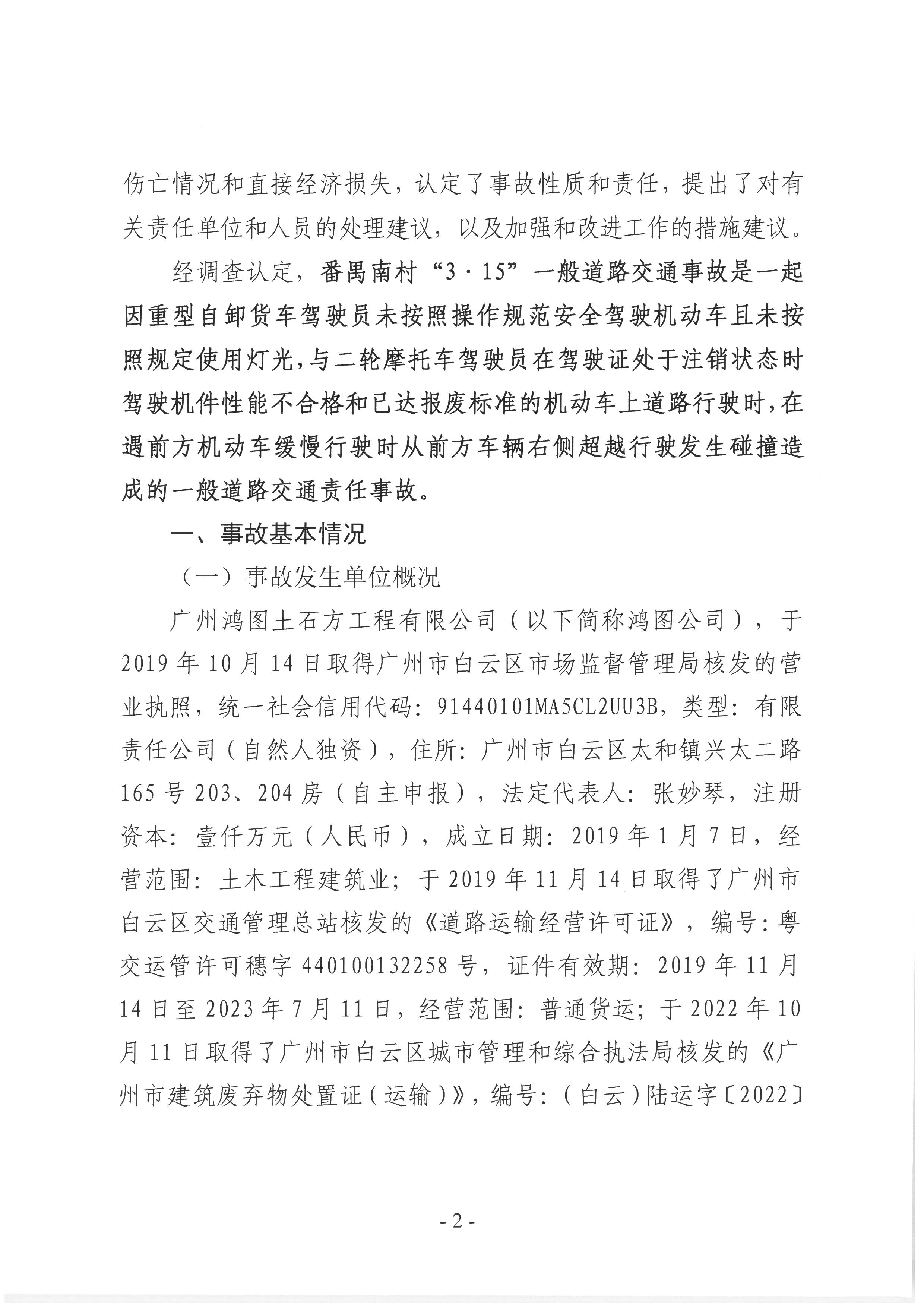 番禺南村“3·15”一般道路交通事故調(diào)查報告