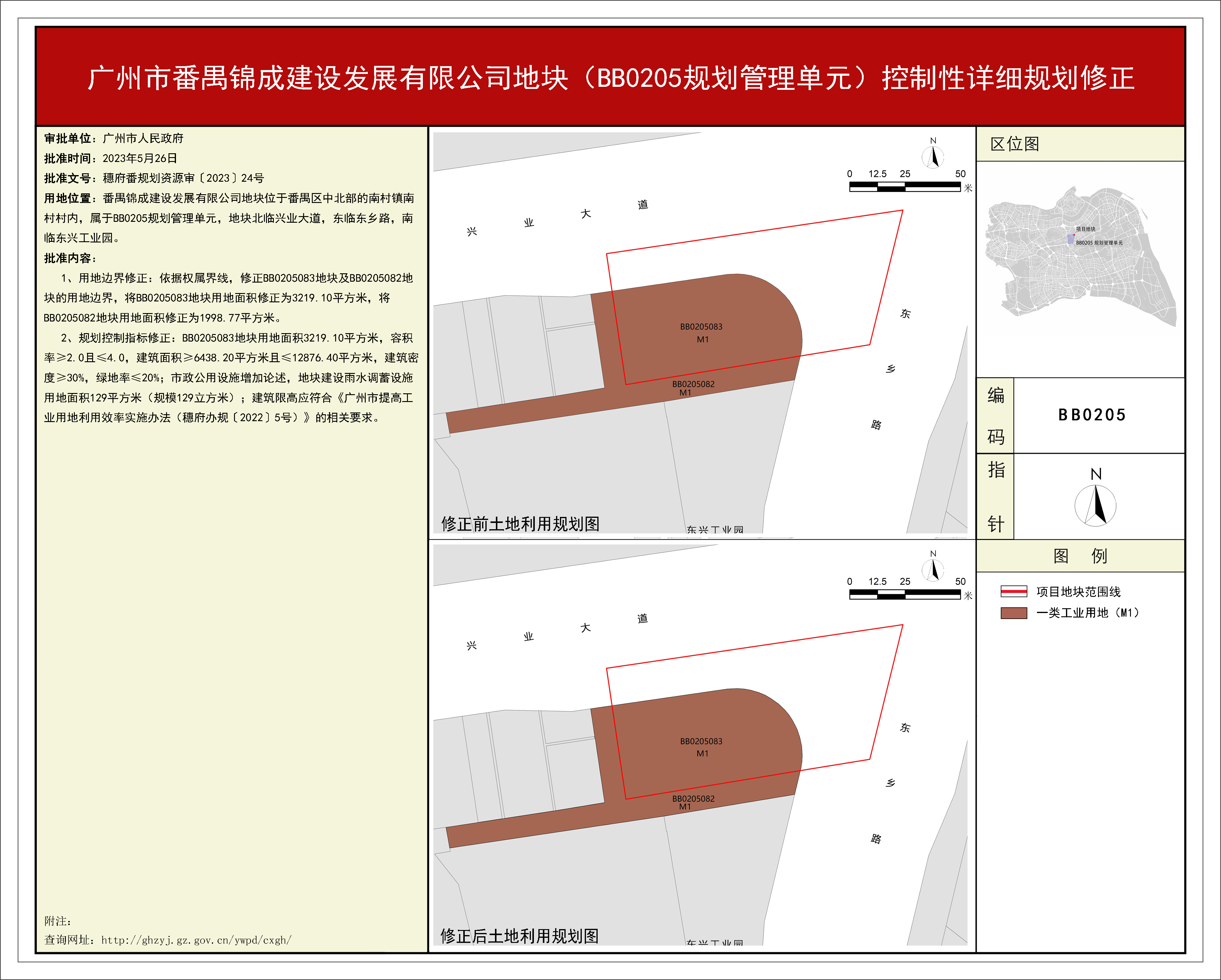 根據(jù)《廣東省城市控制性詳細(xì)規(guī)劃管理?xiàng)l例》、《廣州市人民政府關(guān)于將一批市級行政職權(quán)事項(xiàng)繼續(xù)委托區(qū)實(shí)施的決定》(穗府[2019]8號)、《廣州市人民政府關(guān)于收回一批市級行政權(quán)力事項(xiàng)的決定》(廣州市人民政府令第188號),《廣州市番禺錦成建設(shè)發(fā)展有限公司地塊(BB0205規(guī)劃管理單元)控制性詳細(xì)規(guī)劃修正》規(guī)劃成果已完成規(guī)劃技術(shù)審查、批前公示等程序,并經(jīng)番禺區(qū)土地和規(guī)劃領(lǐng)導(dǎo)小組會議審議通過后獲廣州市人民政府批準(zhǔn),自批準(zhǔn)之日(2023年5月26日)起生效。