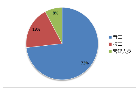 2.企業(yè)總體缺工率為4.72%,普工的需求量較大。缺工人數(shù)排名前三的行業(yè)是計算機(jī)、通信和其他電子設(shè)備制造業(yè),汽車制造業(yè),電氣機(jī)械和器材制造業(yè)。