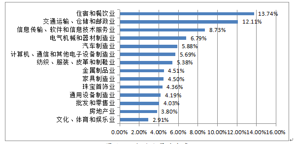 1.企業總體就業形勢穩定,但個別行業流失率偏高。流失率排名前三的是:住宿和餐飲業,交通運輸、倉儲和郵政業,信息傳輸、軟件和信息技術服務業。