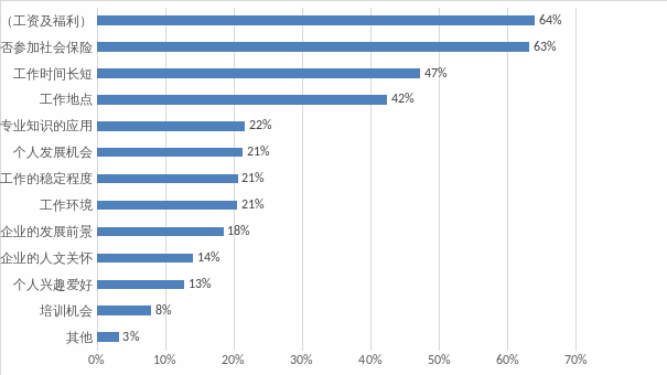 企業吸引求職者的主要優勢排名前三的是:用工規范,嚴格執行勞動法律法規和用工管理的相關規定,有74.57%企業選擇;有合理的工資水平,有70.78%企業選擇;有良好的工作環境,有67.55%企業選擇。