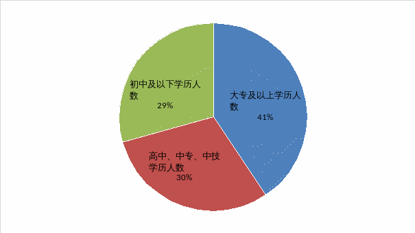 2022年第三季度,企業在崗員工中,初中及以下學歷占比29%,高中、中專、中技學歷占比30%,大專及以上學歷占比41%。
