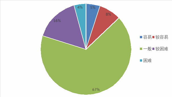 1051家企業中認為招工容易的占比5%,較容易的占比8%,一般的占比67%,較困難的占比16%,困難的占比4%。