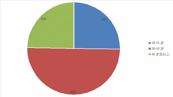 企業對新招聘管理人員的年齡要求按年齡段劃分:18-35歲,有25%企業選擇;36-45歲,有50%企業選擇;46歲及以上,有25%企業選擇。