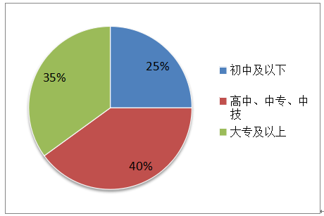 2022年第三季度,到前臺求職的人員中,大專及以上文化程度的占比35%,同比不變;高中(含中專、中技)、初中及以下文化程度的合計占比65%,同比不變。