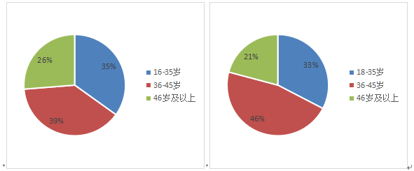 企業對新招聘技工的年齡要求按年齡段劃分:18-35歲,有33%企業選擇;36-45歲,有46%企業選擇;46歲及以上,有21%企業選擇。