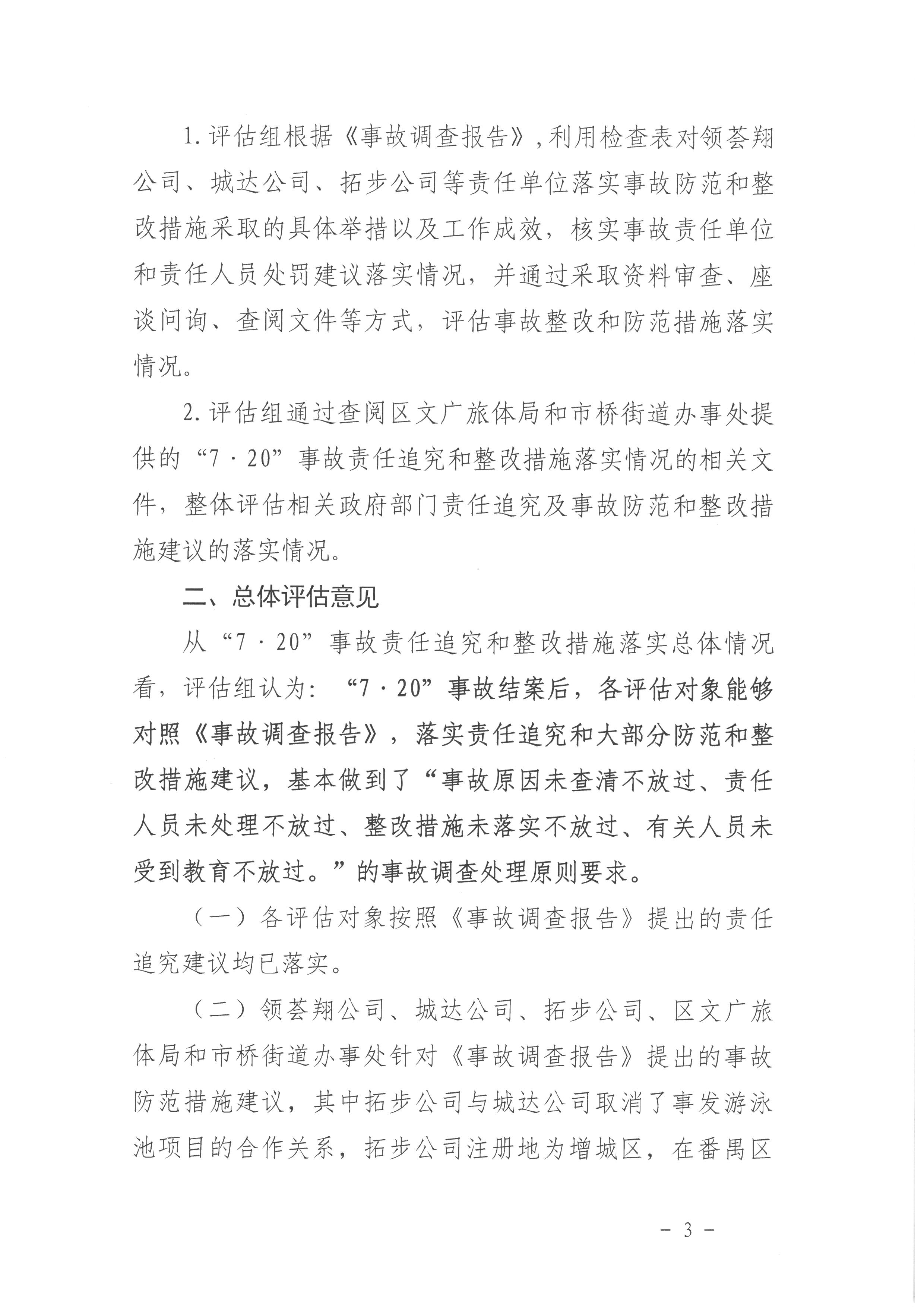 番禺市橋廣州市領薈翔物業管理有限公司“7·20”一般淹溺事故防范和整改措施落實情況評估報告