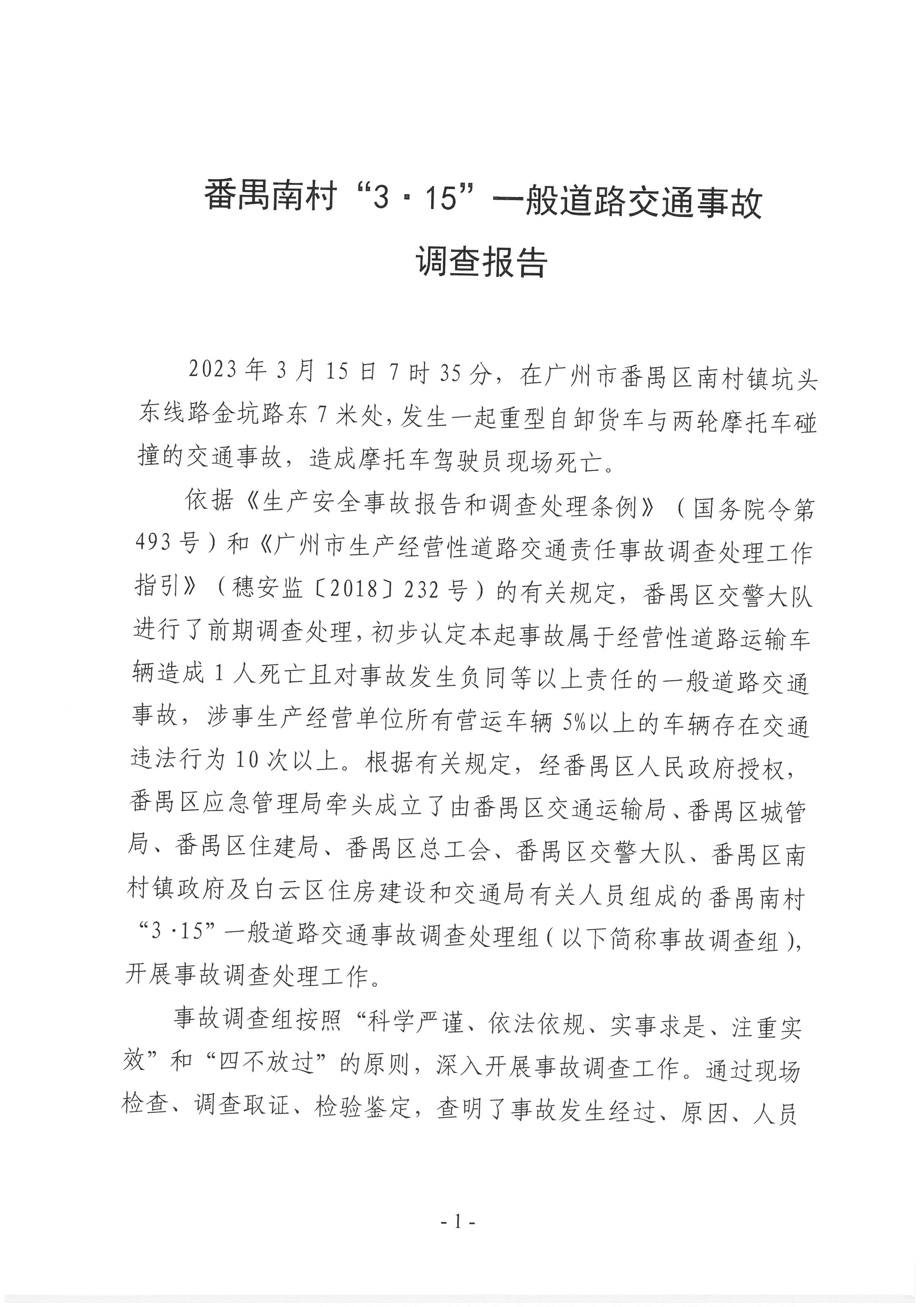 番禺南村“3·15”一般道路交通事故調(diào)查報(bào)告