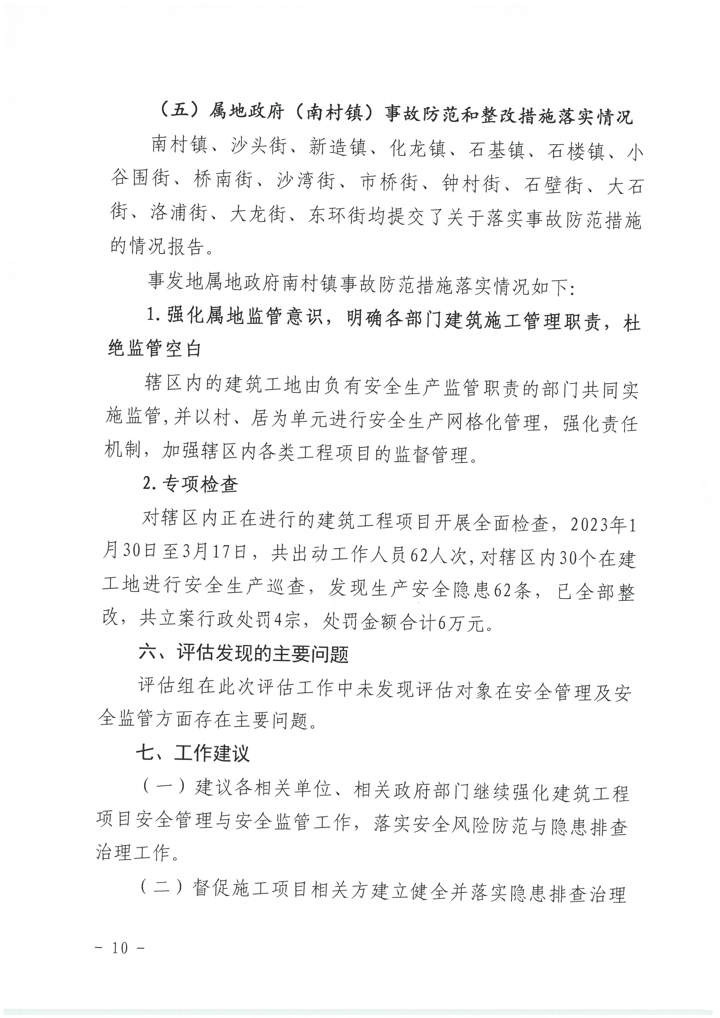廣州市番禺區南村鎮羅邊村舊改更新項目“8·12”一般物體打擊受傷事故防范和整改措施落實情況評估報告