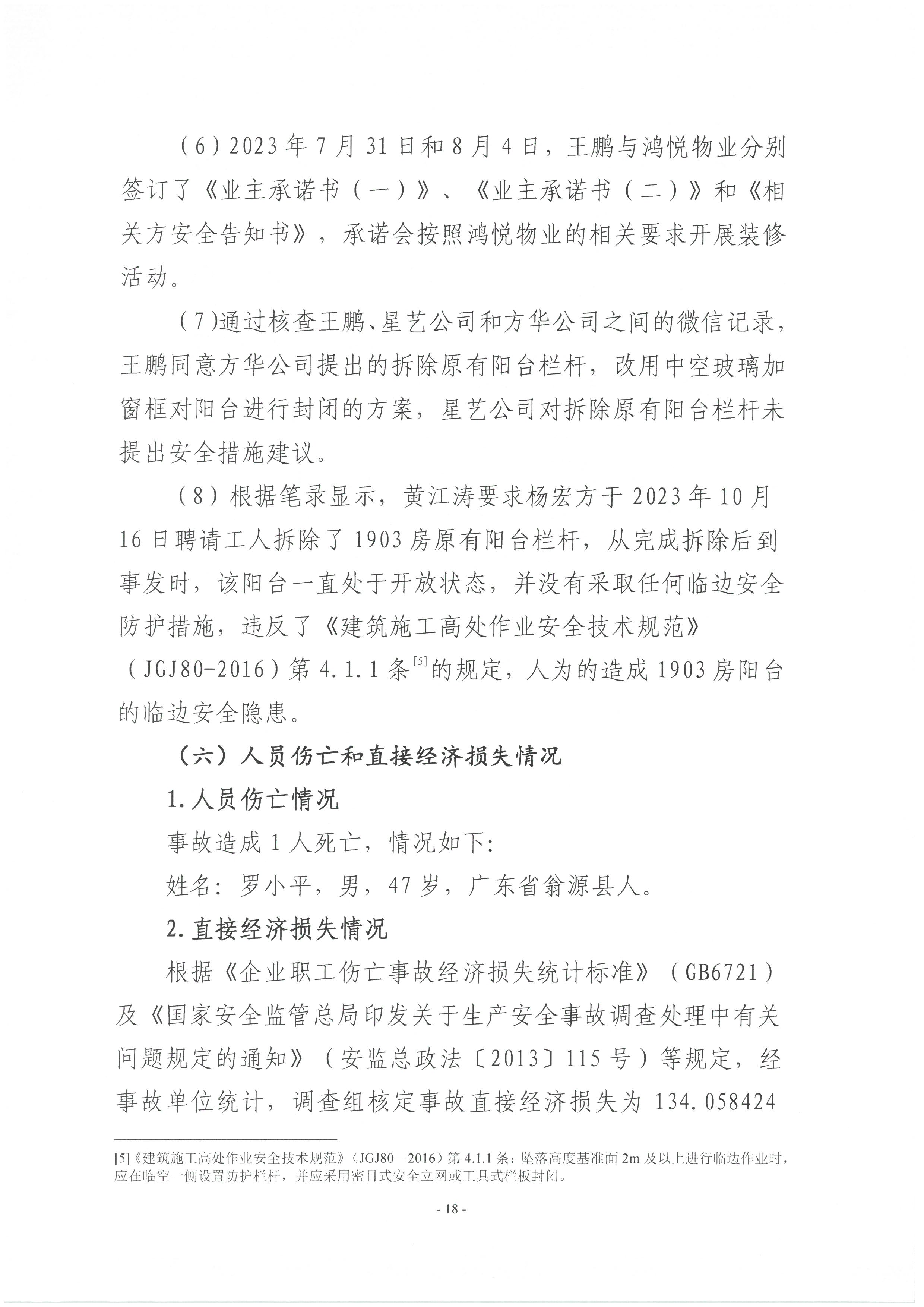 番禺東環廣州方華裝飾工程有限公司“10·17”一般高處墜落事故調查報告