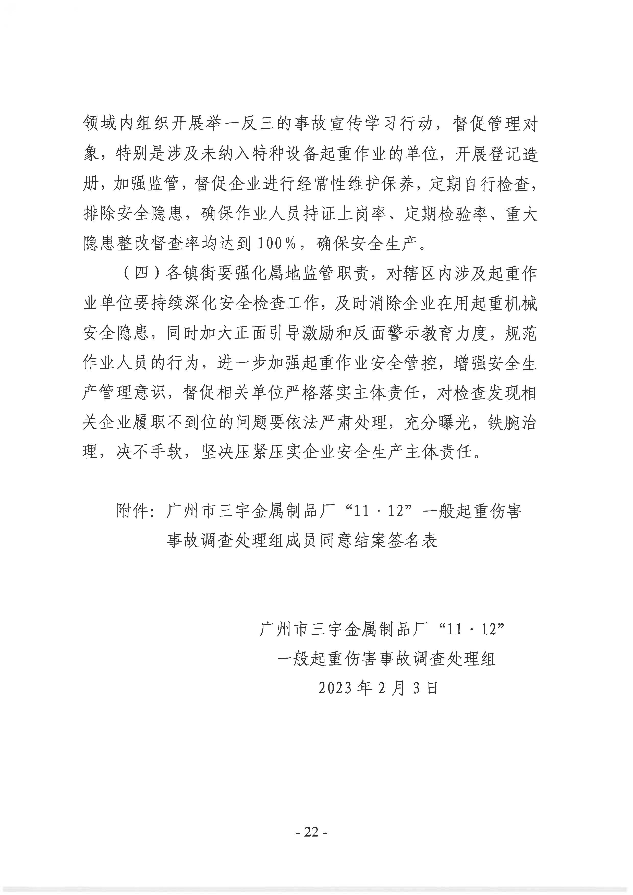 廣州市三宇金屬制品廠“11·12”一般起重傷害事故調查報告