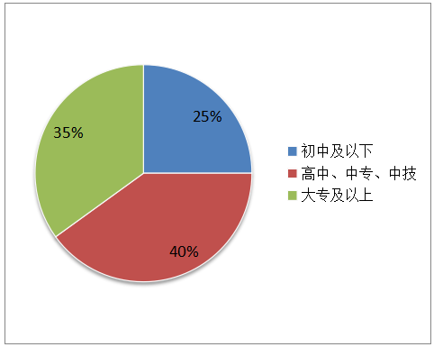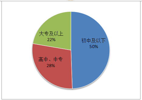 2021年第二季度,我區外來務工人員按學歷劃分,初中及以下學歷占比50%,高中中專學歷占比28%,大專及以上學歷占比22%。