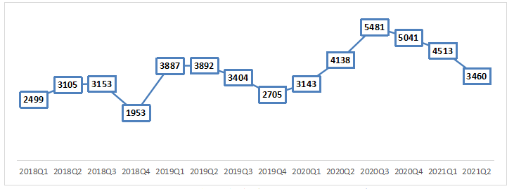 2021年第二季度末,尚有城鎮登記失業人員為3460人,同比減少16.38%。