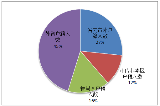此項數據來源于廣州市人力資源和社會保障局統一內部應用門戶中的就業培訓信息系統中的流動人員入穗就業情況數據。