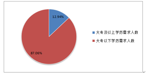 從圖1-5可知,2021年第三季度,用人單位對大專及以上學歷人員的需求占用工需求總量的12.94%,同比下降3.70%。