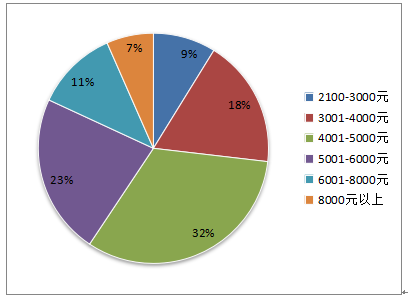 2021年第三季度,求職者期望月薪主要集中在:4001-5000元,占比32%,環比上升5%;8000元以上,占比7%,環比下降17%。