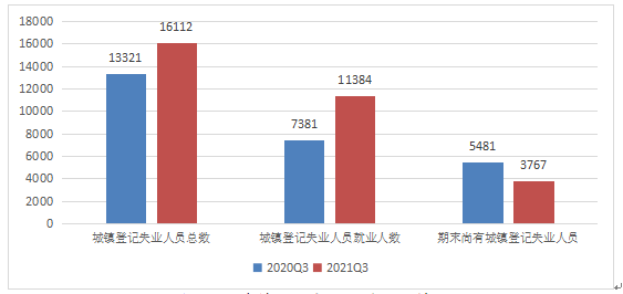 2021年第三季度末,尚有城鎮登記失業人員為3767人,同比減少31.27%。