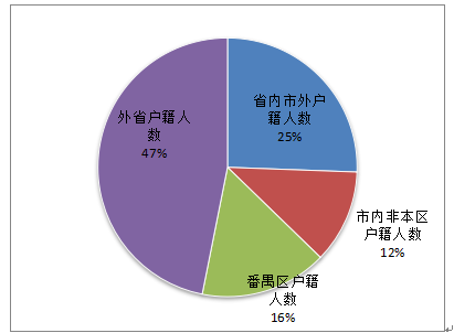 此項數據來源于廣州市人力資源和社會保障局統一內部應用門戶中的就業培訓信息系統中的流動人員入穗就業情況數據,以及廣州市番禺區第七次全國人口普查公報的數據。