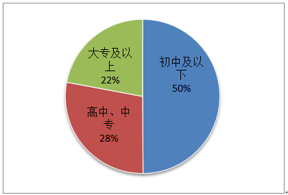 2021年第四季度末,我區外來務工人員按學歷劃分,初中及以下學歷占比50%,高中、中專學歷占比28%,大專及以上學歷占比22%。跟上季度相比沒有變化。