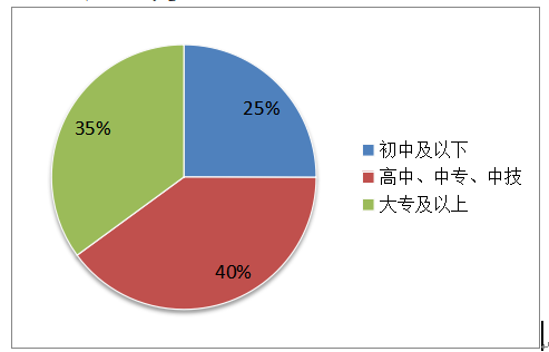 2021年,到前臺求職的人員中,大專及以上文化程度的占比35%,同比不變;高中(含中專、中技)、初中及以下文化程度的合計占比65%,同比不變。