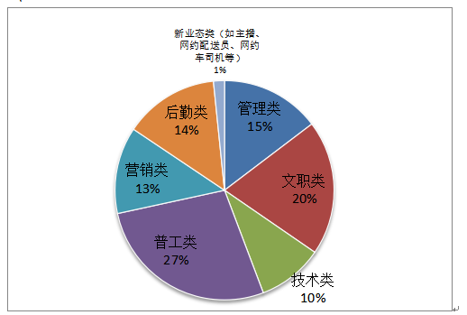 2021年,求職者主要找普工類和文職類工作,分別占求職者總數的27%和20%。