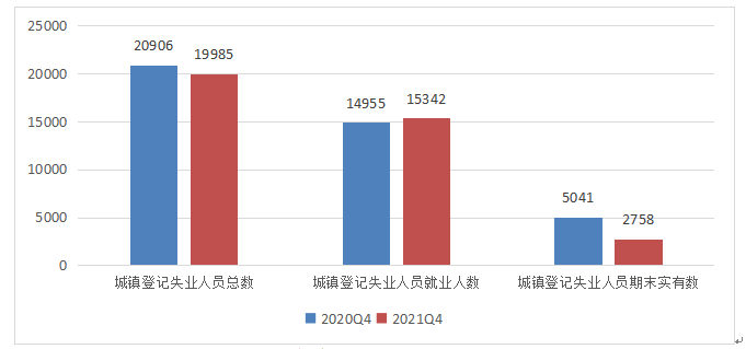 2021年截至第四季度末,城鎮登記失業人員就業人數15342人,同比增長2.59%。失業人員再就業率76.77%,同比上升5.23%。城鎮新增就業人數34145人,同比增長32.32%。