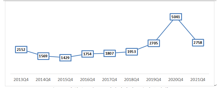 2021年第四季度末,城鎮登記失業人員期末實有人數2758人,同比減少45.29%。