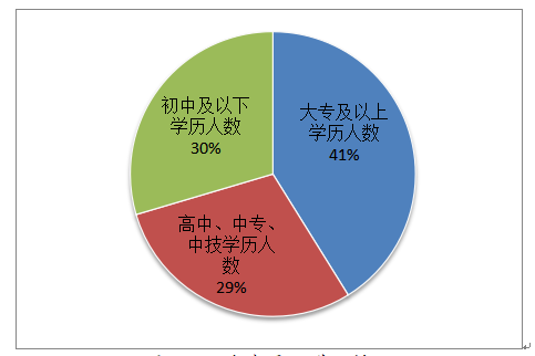 2021年第四季度,企業在崗員工中,初中及以下學歷的占比30%,高中、中專、中技學歷的占比29%,大專及以上學歷的占比41%。