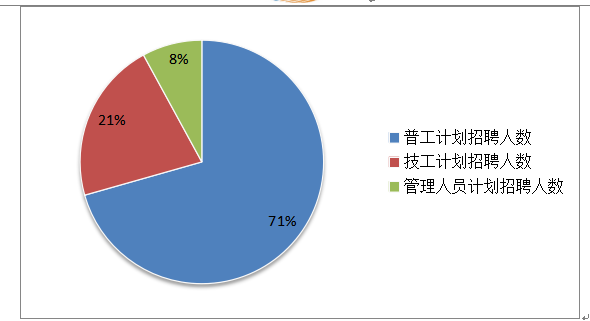 2021年第四季度,企業計劃招聘總人數為11381人,計劃招聘總人數與在崗總人數的比為6.69%。普工、技工、管理人員分別占計劃招聘總人數的比例為71%、21%、8%。