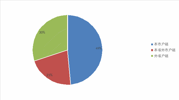 2022年第一季度,求職者有5009人,其中,本市戶籍占比49%(番禺區戶籍占42%,廣州市其他區戶籍占7%),本省外市戶籍占比21%,外省戶籍占比30%。