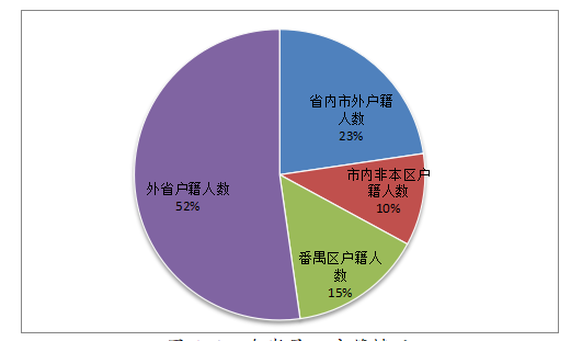 此項數據來源于廣州市人力資源和社會保障局統一內部應用門戶中的就業培訓信息系統中的流動人員入穗就業情況數據。